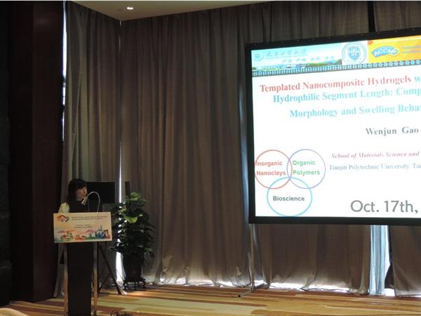 本課題組碩士生高文軍參加了此次會議的智能材料/結構分會并做了題為“Templated Nanocomposite Hydrogels with Different Hydrophilic Segment Length: Comparison of Morphology and Swelling Behaviour”的報告,同時與從事復合材料研究的張明秋等專家、學者及在校碩博生積極討論交流。通過此次會議,進一步了解了交叉學科復合材料的最新研究進展,對于智能材料在細胞培養和藥物釋放方面的應用也有了更全面更深入的理解,為日后課題的進展提供指導和借鑒。