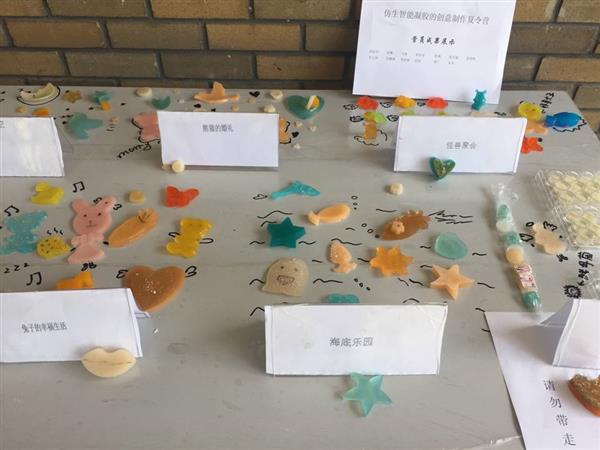 本課題組張青松老師承辦了仿生智能凝膠的功能化和創(chuàng)意制備,主要利用凝膠的軟濕特性,將凝膠與微生物、染料、膜等相結(jié)合,擬利用各自的原理,由項(xiàng)目成員DIY出“抗菌高彈性凝膠鞋墊”、“多彩凝膠生肖”、“軟濕凝膠面膜”、“微生物發(fā)酵多孔凝膠”、“納米凝膠纖維”和“光子晶體凝膠膜”等多種實(shí)用性產(chǎn)品,強(qiáng)調(diào)基本的化學(xué)和材料知識理論與實(shí)際訓(xùn)練相結(jié)合,降低專業(yè)知識背景,突出人文性、交互性、參與性、趣味性、操作性和自我創(chuàng)新性,使項(xiàng)目成員在最短的時(shí)間內(nèi),理解科研的價(jià)值,感受科研的魅力,提高分析問題和動手能力,實(shí)現(xiàn)高分子凝膠的科普化,培養(yǎng)科學(xué)愛好者。