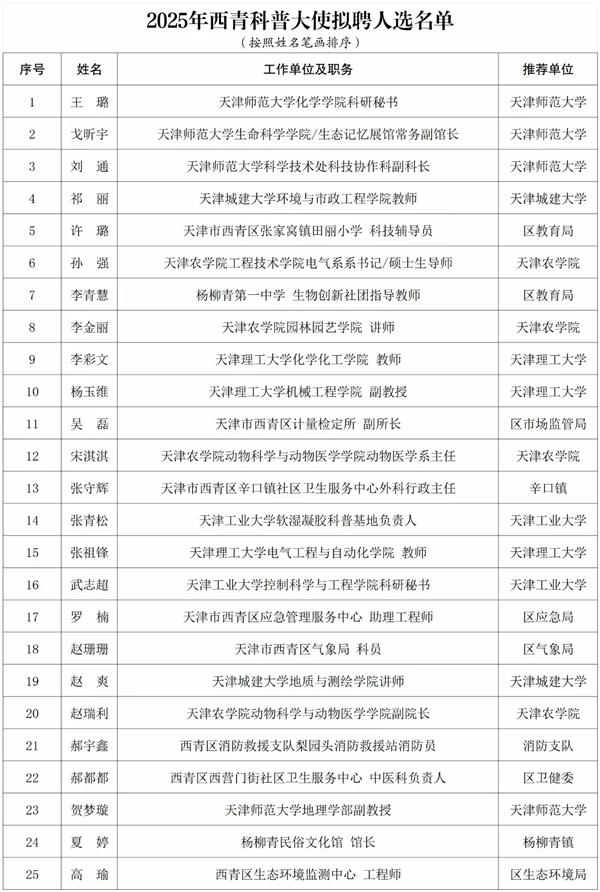 1.傳播科學之聲:以“西青科普大使”身份,面向公眾傳播科學思想、科學精神和科學知識,引領科學風尚。