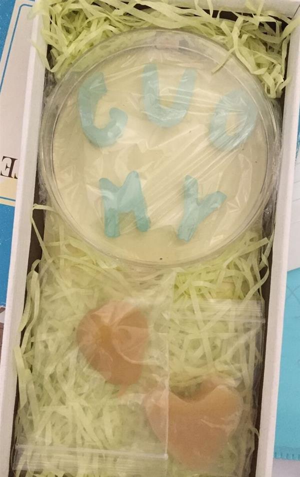 交流會結束后,張青松老師代表課題組全體成員向郭明雨教授贈送了用凝膠制作的Guo