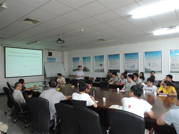 Fibers”的報告。本次報告會由張青松副教授主持,天津工業大學材料學院陳熙副教授、趙孔銀副教授、趙軍強老師等,及材料學院軟濕智能材料課題組的在讀研究生50余人參加了本次報告會。