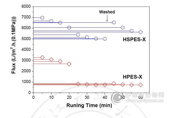 項(xiàng)目組利用自制的磺化聚醚砜試制出了高通量、親水性耐污染綜合性能良好的聚醚砜濾膜。經(jīng)過近年來的努力,突破和掌握了磺化度可控的磺化聚芳醚砜低成本規(guī)模化制備以及耐污染新型濾膜材料產(chǎn)業(yè)化關(guān)鍵技術(shù)。