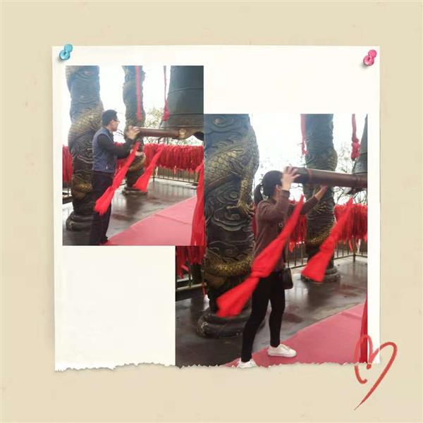 途經北高峰上“天下第一財神廟”,同學們積極地敲了財神鐘。祈禱大家來年都財運滾滾,心想事成。