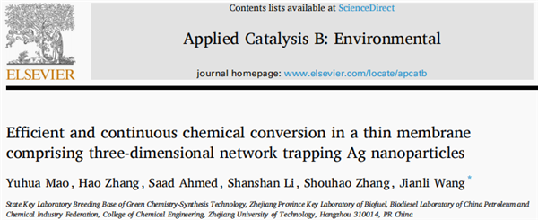近日,浙江工業大學王建黎教授課題組在《Applied Catalysis B: Environment》上發表了題為“Efficient and continuous chemical conversion in a thin membrane comprising three-dimensional network trapping Ag nanoparticles”的研究論文。本工作針對納米貴金屬在應用中表現出的缺點,利用刺激響應性微凝膠可逆膨脹-收縮之特點,通過簡單的動態過濾策略,構建了一種普適性好的納米貴金屬分散負載型催化膜及其反應器,并用于催化劑染料和硝基芳香化合物的還原處理,取得了較好的效果。