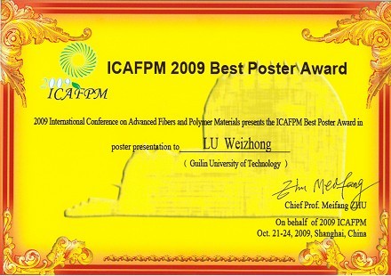 本組碩士研究生參加2009先進纖維與聚合物材料國際學術會議(ICAFPM 2009)本組碩士研究生參加2009先進纖維與聚合物材料國際學術會議(ICAFPM 2009)