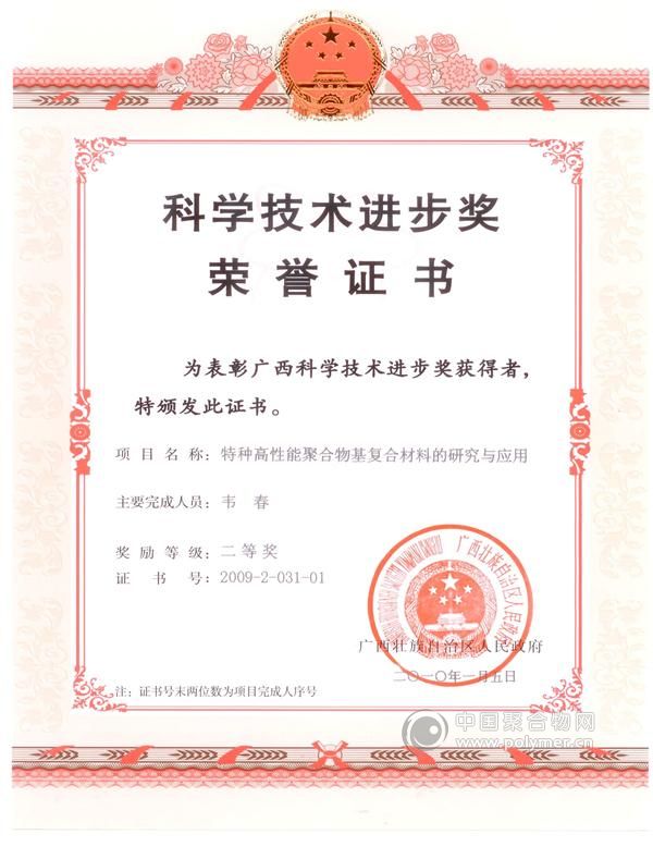 獲得2009廣西科技進步二等獎