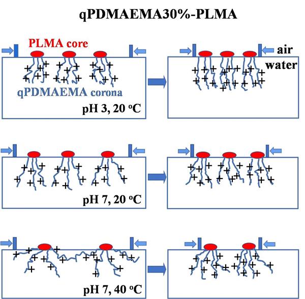 關鍵字:Langmuir-Blodgett film; Block copolymer; qPDMAEMA-b-PLMA; Subphase pH