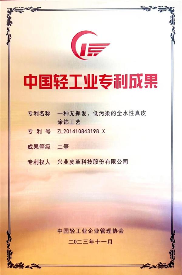 本專利屬于核心專利,專利技術大規模在企業“平面NP”“小牛NP”“NP摔”系列產品上得到應用,對改善皮革涂飾技術的生態性能,減少涂飾過程中的VOC,促進皮革產品的生態性能具有積極作用。