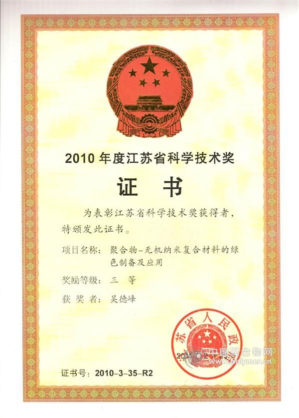 2010年----江蘇省科技進步三等獎