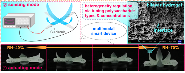 Heterogeneity Regulation of Bilayer Polysaccharide Hydrogels for Integrating pH- and Humidity-Responsive Actuators and Sensors