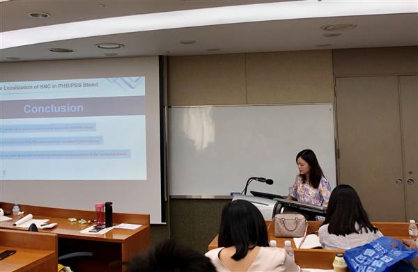 張國瑞同學做了題為“Selective localization of starch nanocrystals in the green nanocomposites with biodegradable polymer blends probed by crystallization temperature”的報告