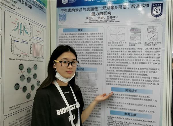 課題組碩士生李佳同學做題為“甲殼素納米晶的表面鏈工程對PHB成核能力影響”的墻報展講