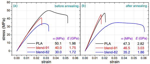 Poly(L-malic acid) (PLMA) oligomer was used as the minor phase to prepare the blends with poly(L-lactic acid) (PLLA), with the objective to develop fully biomass-derived and biodegradable aliphatic polyester blends with balanced overall performance. The phase behavior and viscoelastic responses reveals that the two phases are thermodynamically immiscible, showing high level of interfacial tension in their blends. Poor phase adhesion and lower mass weight of PLMA results in an evident decrease of mechanical properties of the blends as compared to PLLA. The dilute effect caused by the addition of PLMA, however, promotes the cold crystallization of PLLA. Therefore, the strength and modulus losses of the blends can be remedied well by the annealing in solid state. Besides, the degradation rates can also be regulated by the presence of hydrophilic PLMA phase. In this case, a fully green PLLA/PLMA blend with balanced properties is fabricated. This work also provides useful information developing new applications of PLMA.