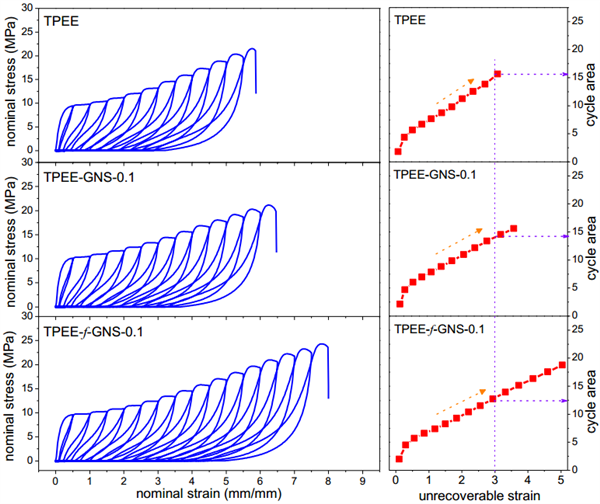 and tensile strengths of TPEE, and the surface functionalization of GNS further