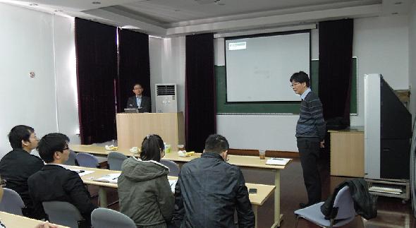 2013年11月25日,應吳國章教授邀請,來自日本三菱化學新產品研發中心的高木喜代次研究員蒞臨實驗室考察指導。高木先生為課題組師生作了題為“Introduction of MCC’S Bio-polymers”的學術報告。報告會由吳國章教授主持、翻譯。報告中,高木先生介紹了三菱化學在生物基聚碳酸酯應用方面所做的主要工作,并向大家展示了最新產品。報告后,高木先生與與會師生就報告中的內容及研究中遇到的問題進行了深入的探討,對實驗室課題的研究工作提出了寶貴意見。下午,相關同學就合作項目研究進展向高木先生作了詳細匯報,并進行了深入探討。高木先生肯定了我們的工作,提出了建設性指導意見,并期望取得更大的突破性進展。