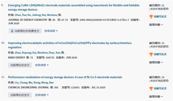 課題組新增高被引論文1篇:Nano Energy 2020,72,104715。高被引論文總數增至11篇。