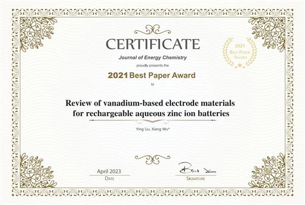 Ying Liu, Xiang Wu* Review of vanadium-based electrode materials for rechargeable aqueous zinc ion batteries Journal of Energy Chemistry 2021,56, 223-237