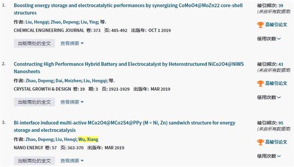 7月11日ESI數據庫更新。課題組新增高被引論文1篇 (Nano Energy