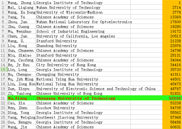 世界科學家2019年年度科學影響力排名