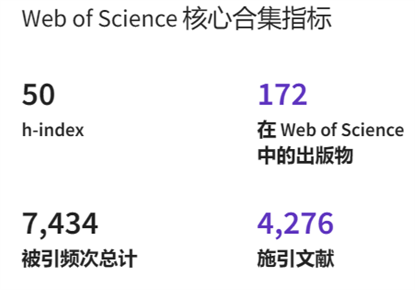 截至目前,課題組共發表論文172篇,被引用次數7434次。H因子50。這是一個新的里程碑。期待年底總引用次數超過9000次,H因子達到55。