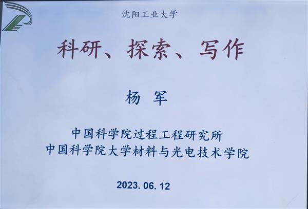 2023年6月12日下午,中科院過程工程研究所楊軍研究員應邀在教學樓F404教室為課題組師生作了題為《科研 探索 寫作》的學術報告。大家和楊老師進行了熱烈討論,受益匪淺。