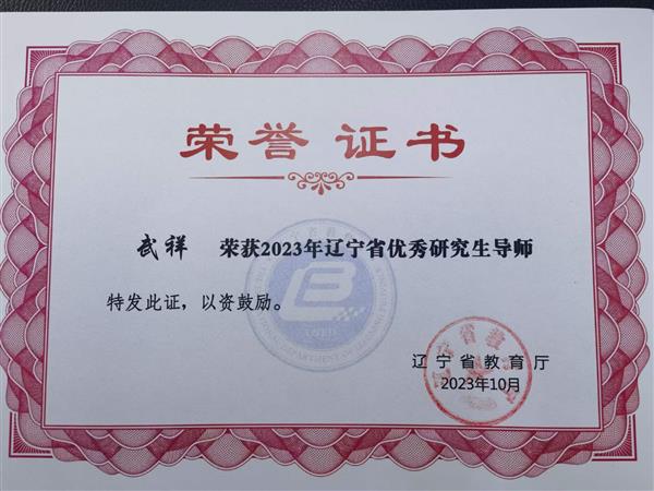 武祥教授被評為2023年遼寧省優秀研究生導師