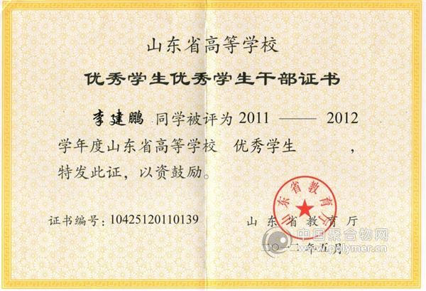 近日,山東省教育廳公布了2011年山東省優(yōu)秀學(xué)生的獲獎(jiǎng)學(xué)生名單,課題組2012屆畢業(yè)生李建鵬榜上有名。同時(shí),李建鵬也獲得了2012年山東省優(yōu)秀畢業(yè)生的榮譽(yù)稱號(hào)。