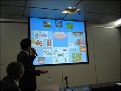 Professor Guang Yang from Huazhong University of Sci & Tech was invited to the meeting, and gave her Invitation Lecture of Preparation of high performance biobased composites from poly(lactic acid) and microcrystalline cellulose. Besides , PhD. candidate Zhijun Shi gave his oral presentation of In situ Nano-assembly of Bacterial cellulose/ Polyaniline during the meeting.