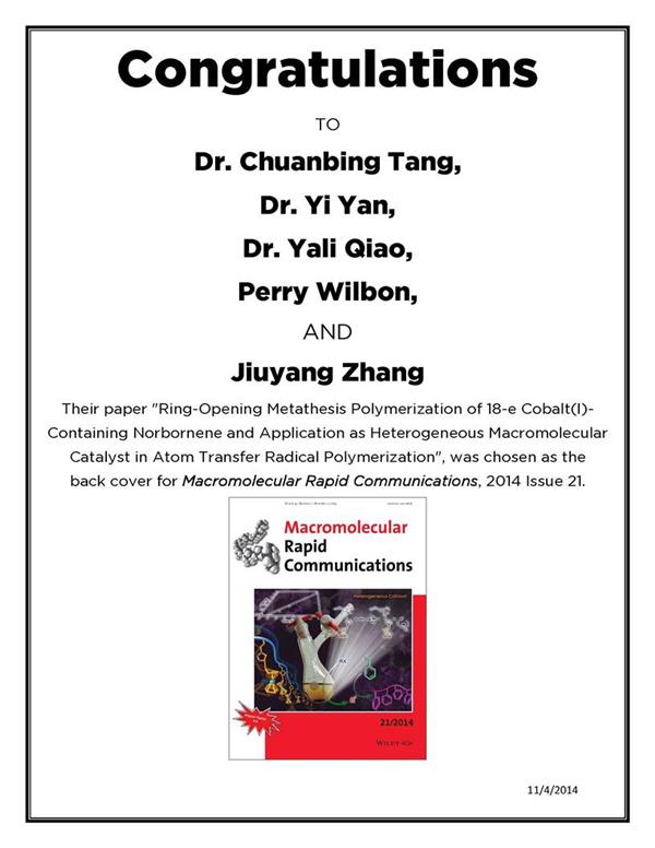 南卡羅萊納大學Chuanbing Tang 研究組