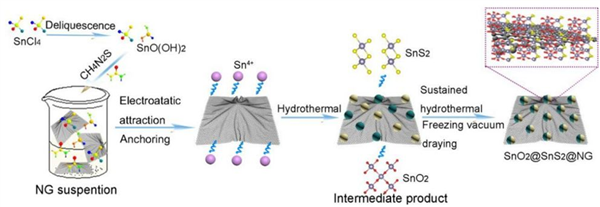 圖1. SnO2@SnS2@NG復(fù)合電極材料合成示意圖