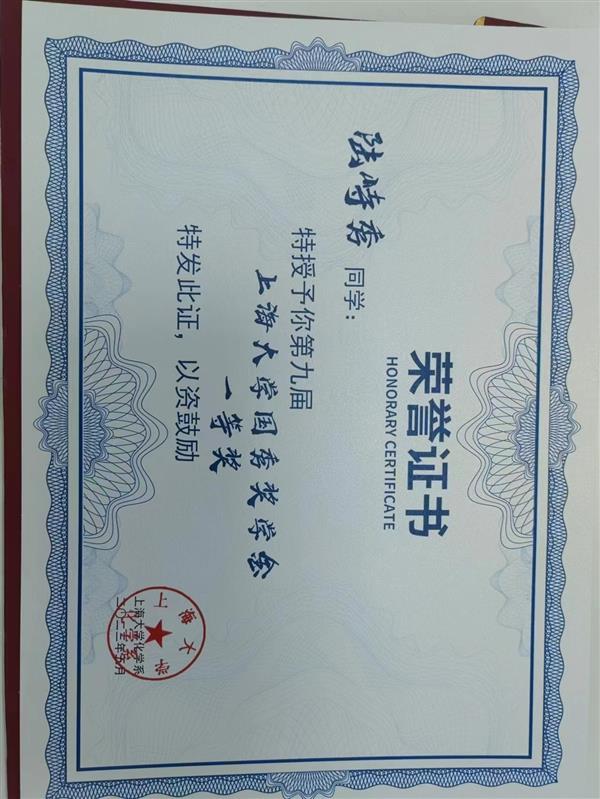 祝賀陸峙秀同學(xué)獲得國秀一等獎學(xué)金