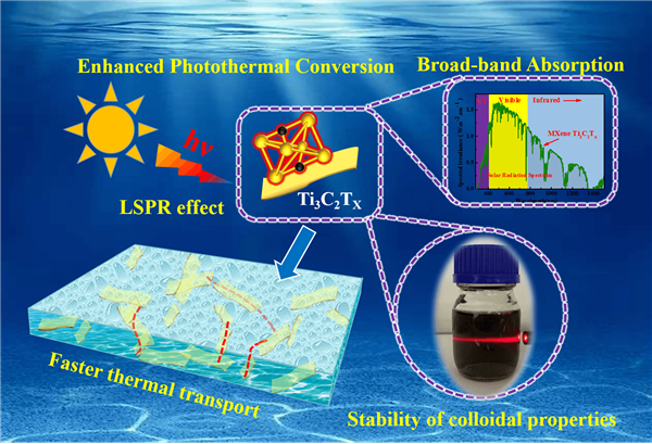 二維過渡金屬碳(氮)化物(Mxene)是自2011年YuryGogotsi等發現碳化鈦(Ti3C2Tx)以來的一類新型的二維材料。因其具優異的高導電性、高導熱性、電磁波吸收能力等性能已被廣泛應用于電磁屏蔽、超級電容器、催化等各個領域。最近,MXene被證明具有超強光吸收能力,其太陽光譜響應范圍可擴展到近紅外(NIR)區域,在太陽能光熱儲能系統的中顯示出了巨大的應用前景。已有大量的研究報道了MXene的光熱轉換效應,然而對其作為光吸收劑的光熱轉化機理,人們尚缺乏深入了解。