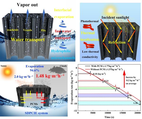 高歡:淡水資源短缺是我國沿海地區農業灌溉面臨的主要問題。太陽能驅動的界面脫鹽被認為是一種高效和可再生的技術,在緩解水資源短缺方面具有巨大潛力。然而,間歇性的太陽照射和連續脫鹽過程中的鹽分沉積所造成的能源效率減弱,大大限制了其實際應用。因此,迫切需要尋求高效、低成本和可持續的海水淡化技術應用于農業灌溉。本文提出了一種基于相變材料耦合界面蒸發的海水直接灌溉式太陽能種植系統。首先,我們選擇MXene負載到去木質素氣凝膠上作為光熱蒸發層,去木質素氣凝膠作為水輸運基質,其次,通過耦合相變材料作為儲能單元,可以有效地回收蒸發器過熱的廢熱。形成了光熱蒸發層+水輸運基質+儲能單元的“三明治結構”。為了獲得最大的蒸發效率,我們對橋式和浮動式結構進行了傳熱學模擬。該系統實現了光熱轉換、余熱儲存/釋放和先進的能源管理過程,實現多云天氣間歇性太陽能照射下的穩定脫鹽提供了一個非常有前景的途徑。接著我們把界面蒸發與海水直接灌溉式太陽能種植系統相結合,使得海水淡化技術應用于農業灌溉,達到成本低、能耗低、節能、節水的效果,緩解了我國農業水資源短缺的現狀。在實際天氣條件下,該系統的水蒸發速率高達2.0 kg·m-2·h-1,淡水收集量可達8kg·m-2·day-1,具有廣闊的應用前景。