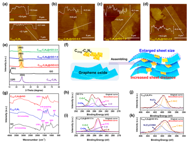 圖3. GO&Cring-C3N4納米片的微觀形貌和表征