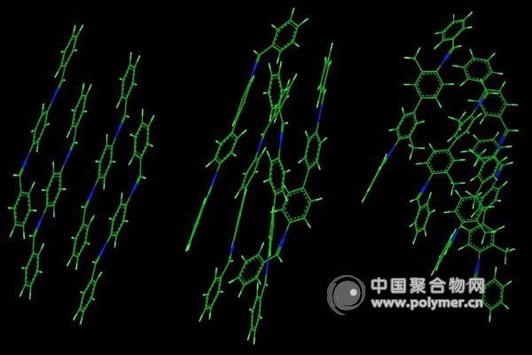 設計合成了柔-剛-柔三嵌段低聚物,通過調整剛性段的長度及共軛結構,合成剛性段為對苯型、聯苯型、二甲基取代聯苯型席夫堿結構,柔性段為聚乙二醇的低聚物,以改變剛柔體積分數和剛性段性能,發現剛柔低聚物的液晶性能受控于剛性段的基本結構,熔點和清亮點隨柔性段加長而降低。對溶液中的微相分離研究發現:除了體積分數影響,剛性段的共軛平面夾角及奇偶效應具有顯著影響。存在共軛平面扭曲的低聚物由于不能層狀疊加而形成球形結構,而共軛平面角度較小體系則可以形成纖維狀結構,進一步通過計算機模擬證明了上述結論。
