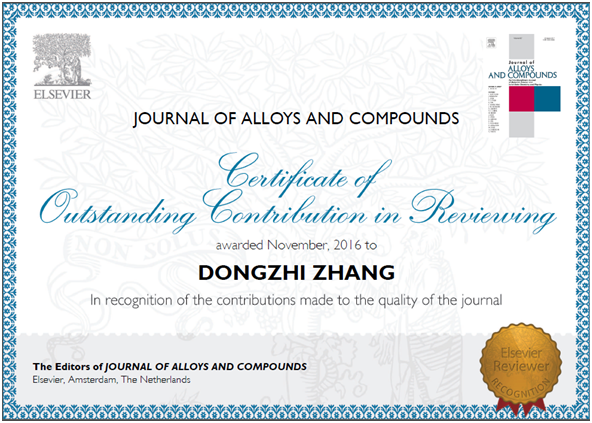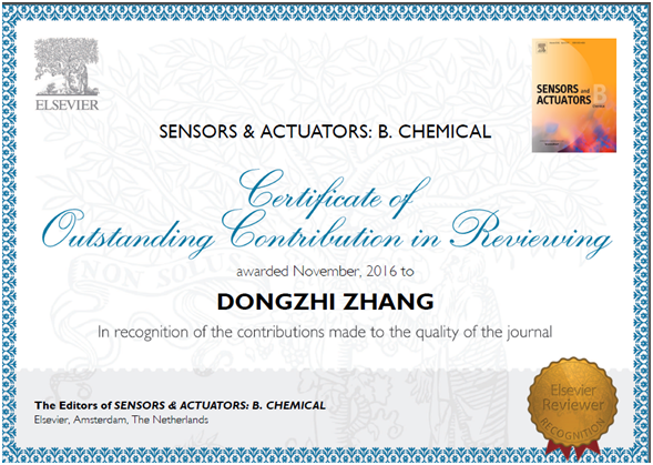 張冬至獲評Sensors and Actuators B:Chemical和Journal of Alloys and Compounds杰出審稿人