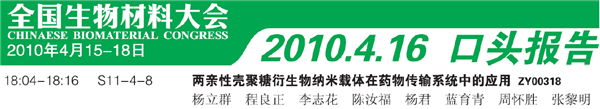 [學術(shù)會議/Scientific Conferences- 102]王紅飛, 朱麗君, 唐春燕, 張黎明*. 蛋白質(zhì)分子印跡水凝膠的制備與性能. 全國生物材料大會, 成都, 2010/4/15 - 2010/4/18.