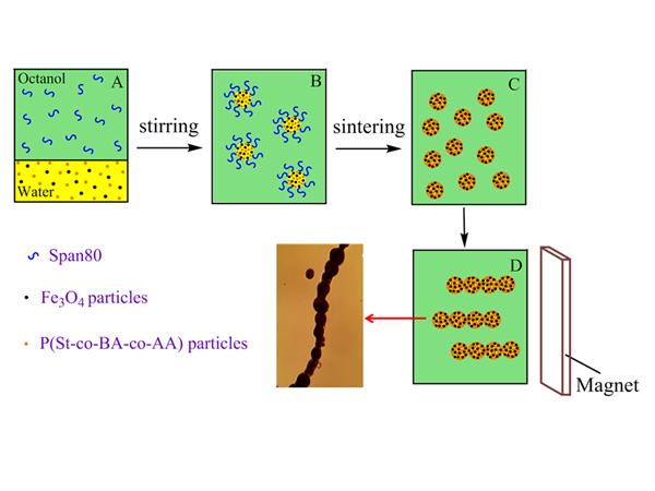 Li C, Tan J, Li H, et al. Fast magnetic-field-induced formation of one-dimensional structured chain-like materials via sintering of Fe 3 O 4/poly (styrene-co-n-butyl acrylate-co-acrylic acid) hybrid microspheres[J]. RSC Advances, 2015, 5(36): 28735-28742.