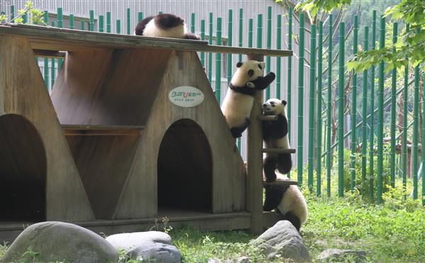 大概是六一兒童節的原因,作為大朋友的我們聊著自己的小時候,一路歡笑。到達大熊貓保護區,看著可愛的小熊貓,瞬間心都暖化了,但是當看到大熊貓在泥潭中染臟的身體時,卻有種想給它們洗澡的沖動。哈哈,當然啦,它們還是最可愛的。