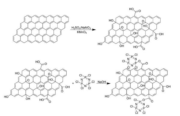 Improving the flame resistance and thermal conductivity of ethylene-vinyl acetate composites by incorporating hexachlorocyclotriphosphazene-modified graphite and carbon nanotubes.