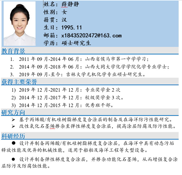 學生:薛靜靜,2019級碩士