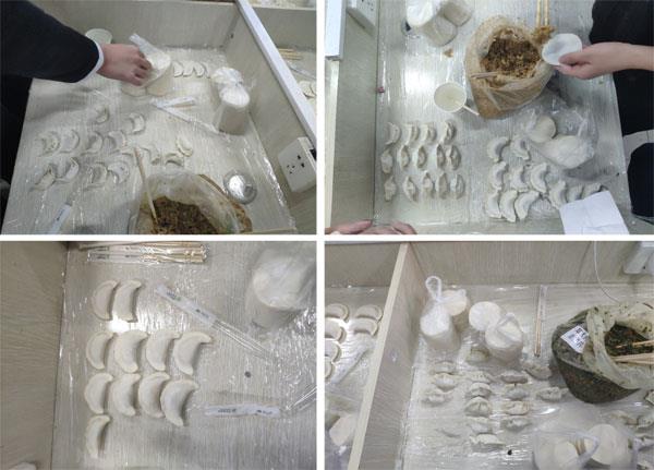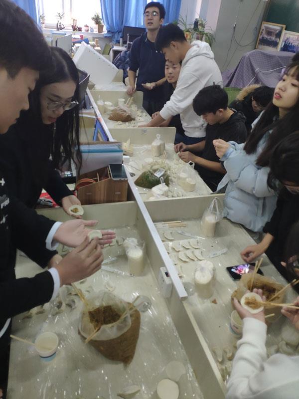 同學們互相交流餃子的不同包法