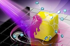 Light (purple) induces reversible solid-to-liquid transitions of a polymer (yellow).