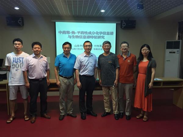 2016年7月5日,周武藝教授邀請山東山東中醫(yī)藥大學(xué)付先軍博士來交流,并做了“基于化學(xué)信息特征分析和虛擬靶標(biāo)預(yù)測技術(shù)的中藥寒熱平藥性作用機(jī)制的現(xiàn)代詮釋研究”的學(xué)術(shù)報告。