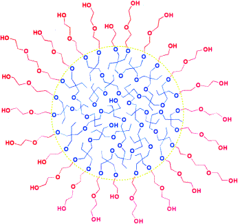 An ill-defined hyperbranched multiarm copolymer (see picture) with a high hydrophilic fraction (>60?%) self-assembles in water to form giant polymer vesicles (branched polymersomes). The size of the branched polymersomes can be easily controlled by adjusting the hydrophilic fraction of the copolymer, with the average diameter of the larger branched polymersomes exceeding 100 μm.