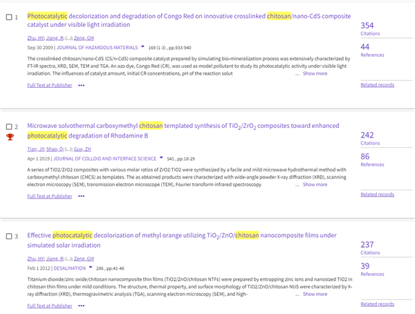 課題組2篇論文引用數位列殼聚糖基光催化材料領域全球前三名